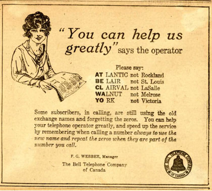 An important change was made in September of 1884 when approximately 1,200 customers in Montréal and 1,000 from Toronto received notice that all future calls would be made by a phone number and not by a name.